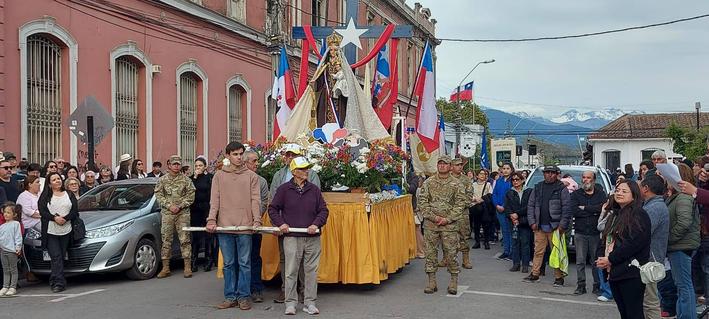 Las cuatro parroquias celebraron el Día de la oración por Chile. Peregrinando desde la Parroquia Nuestra Señora del Carmen, siendo la primera estación dedicada a los jóvenes, de catequesis quienes llevaban una gran bandera chilena, así siguió por las calles con nuestra Madre y Reina de Chile, siempre vitoreada con pañuelos blancos y banderas chilenas desde niños a adultos mayores.